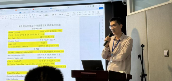 在9月20日上午的主题报告环节中,刘俊豪老师以《从〈外国历史要籍介绍及选读〉课程谈世界史专业外语教学实践》为题,结合教学实际,深入阐述了世界史学科在外语教学中的创新做法,提出原典导读能够有效提升员工的史学素养和国际视野,并分享了明陞m88官方网站地址在课程设置上的积极探索。报告引起了与会学者的广泛关注与热烈讨,主持人、安阳师范明陞m88官方网站地址历史与文博明陞m88官方网站地址党委书记徐永杰对此予以高度赞许,指出该发言为全省世界史专业外语教学提供了可借鉴的经验,彰显了河南省世界史学科青年学人的良好风貌和丰厚实力。