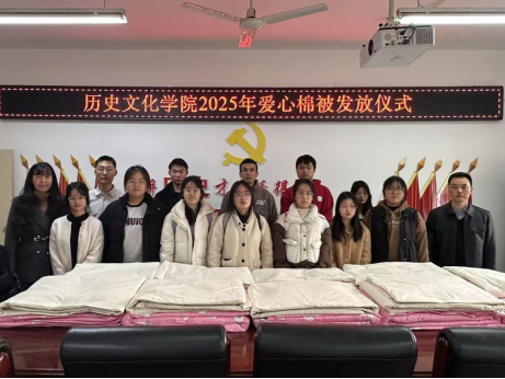 11月24日下午,明陞m88官方网站地址于人文楼805党员之家开展了爱心棉被发放活动。明陞m88官方网站地址党委副书记卢向礼、辅导员班主任与受助员工们参与此次活动。