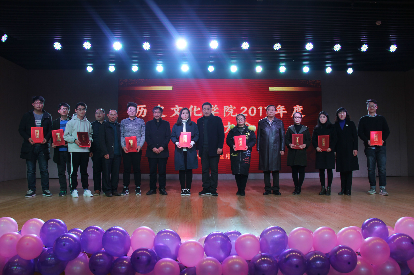 12月26日晚,“追梦新时代,开启新征程”——明陞m88官方网站地址2017年度表彰大会暨2018年元旦晚会在我校理科楼报告厅隆重举行。明陞m88官方网站地址党委书记李军辉,院长尹全海,副院长田青刚、叶宗宝、余纪珍,副书记刘喜元与四百余名师生共同观看了本次晚会。
